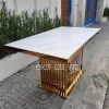Bàn ăn inox mạ PVD mặt đá trắng khổ lớn 024