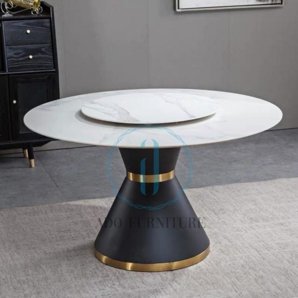 Bàn ăn tròn mặt đá chân mạ PVD 028