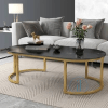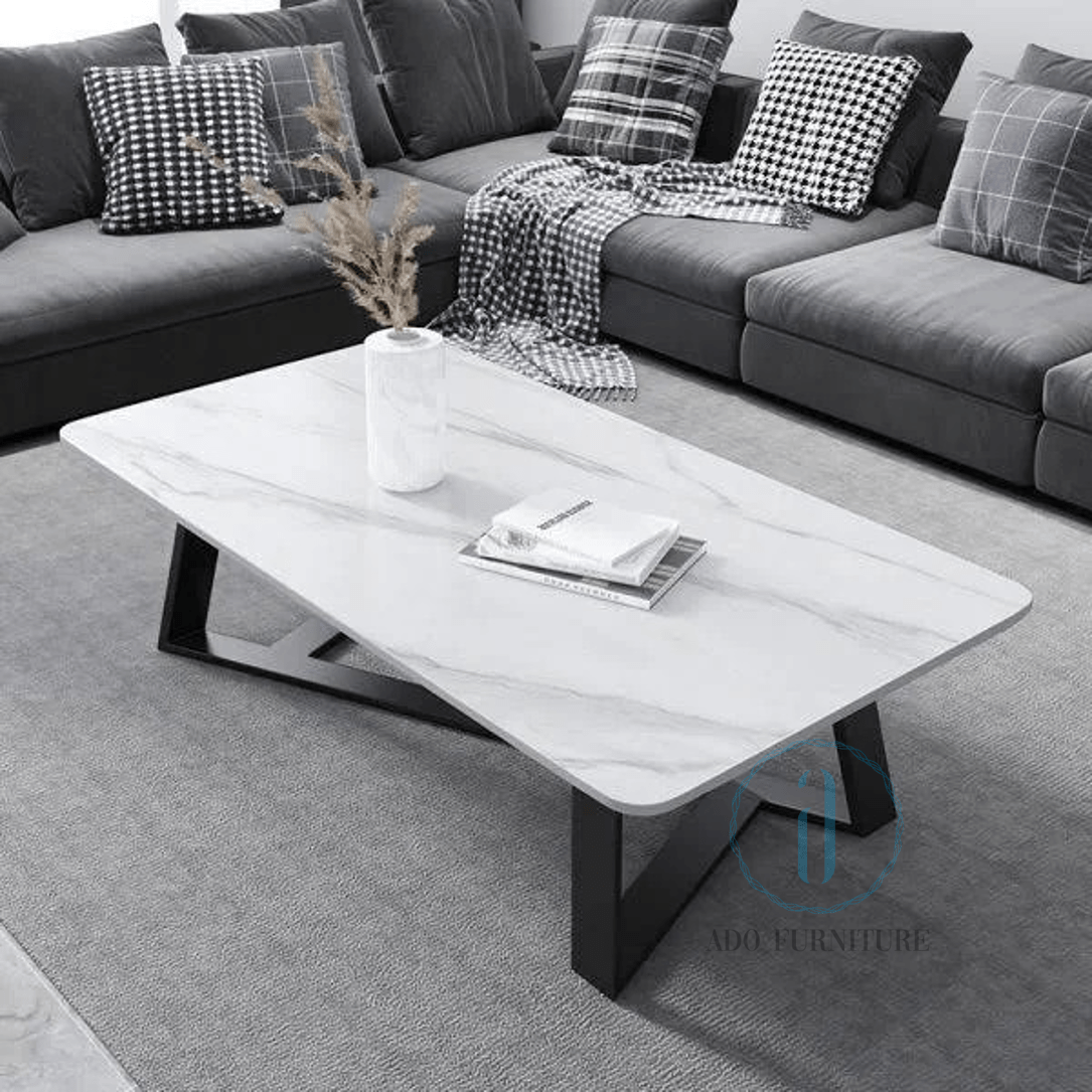 Bàn trà/ Bàn sofa chữ nhật mặt đá trắng Ado 076