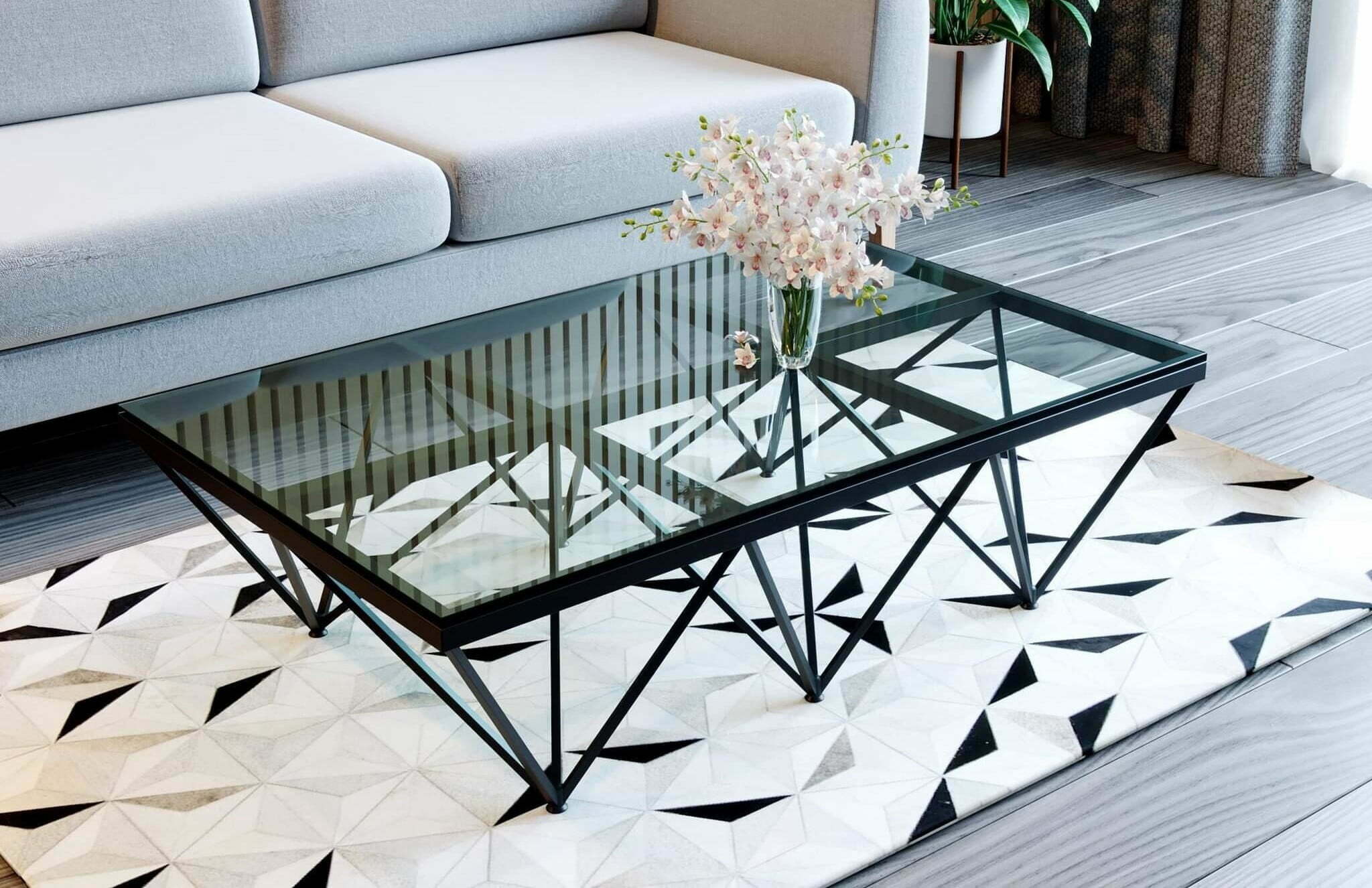 Bàn trà/ Bàn sofa khung đen mặt kiếng trong Ado 040