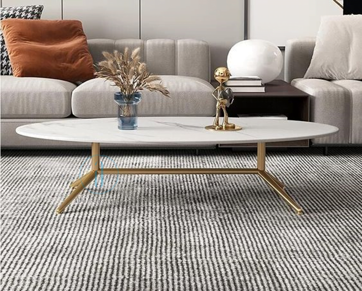 Bàn trà / bàn sofa bầu dục mặt đá khung sắt Ado 068