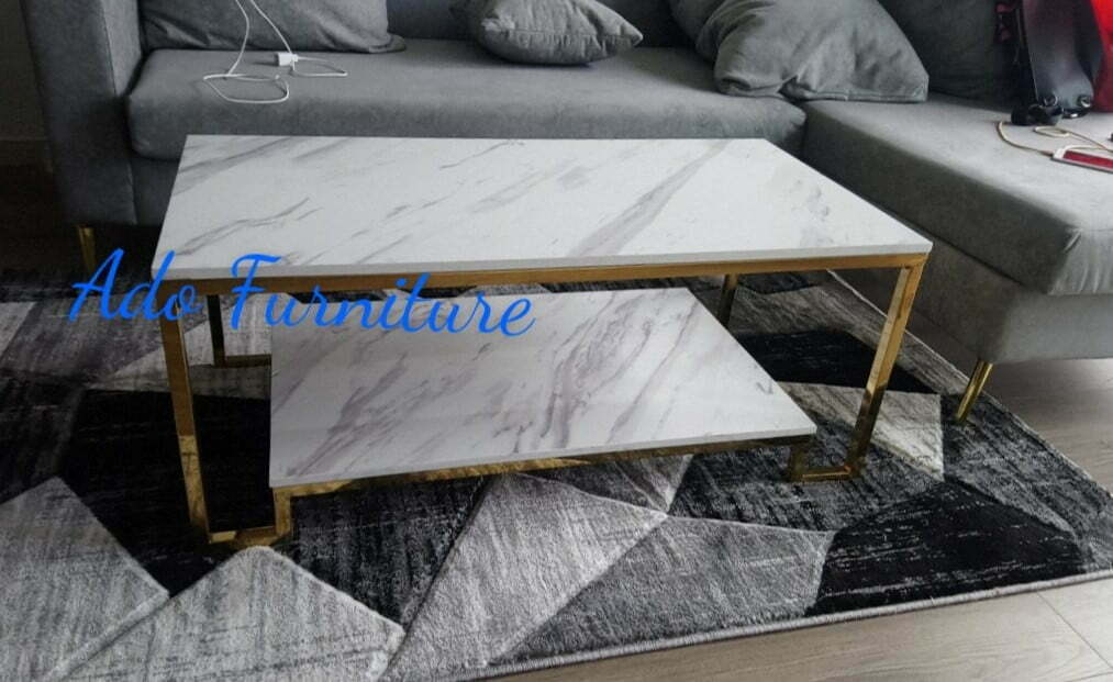 Bàn trà inox mạ/ Bàn sofa inox mạ PVD mặt đá Ado 052