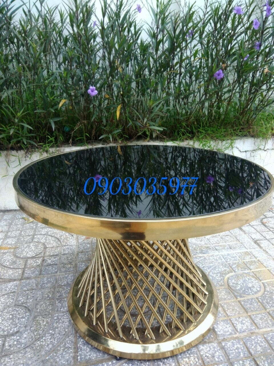 Bàn trà inox mạ PVD/ Bàn sofa inox mạ vàng Ado 055