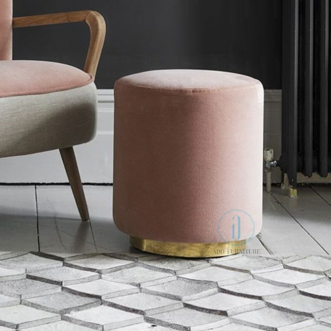 Đôn sofa trơn đế inox mạ vàng 003
