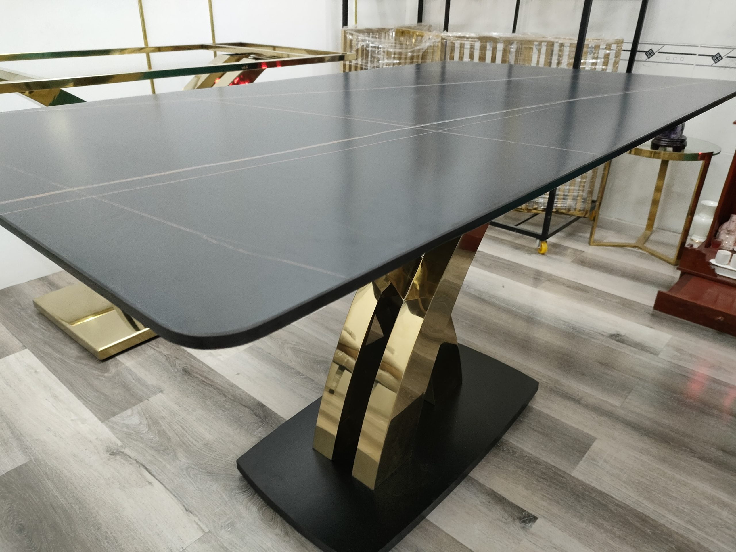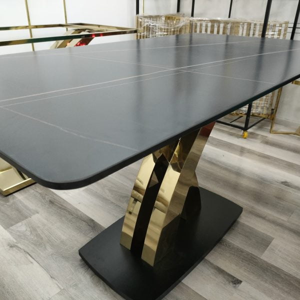 • bàn ăn inox mạ vàng mặt đá