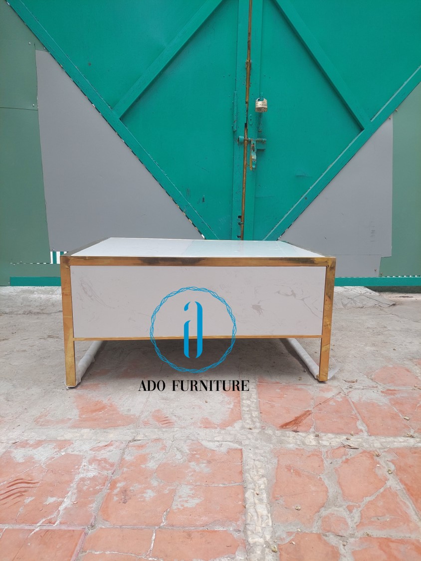 Chúng tôi là đơn vị trực tiếp sản xuất và gia công bàn sofa inox mạ vàng mặt đá theo yêu cầu.