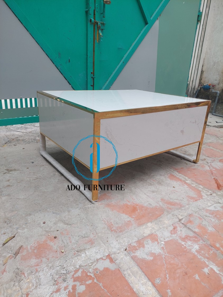 Bàn sofa inox mạ vàng sử dụng công nghệ xi mạ chân không PVD hiện đại nhất hiện nay trên nền inox 304. Inox mạ vàng càng ngày càng là sự lựa chọn ưu tiên của chủ đầu tư phân khúc cao cấp.Sản phẩm inox mạ vàng có thể tạo ra những sản phẩm như bàn ghế, nẹp inox, tủ trưng bày.Hay những món đồ nội thất ở sảnh chung cư, khách sạn. Tạo điểm nhấn cho không gian.