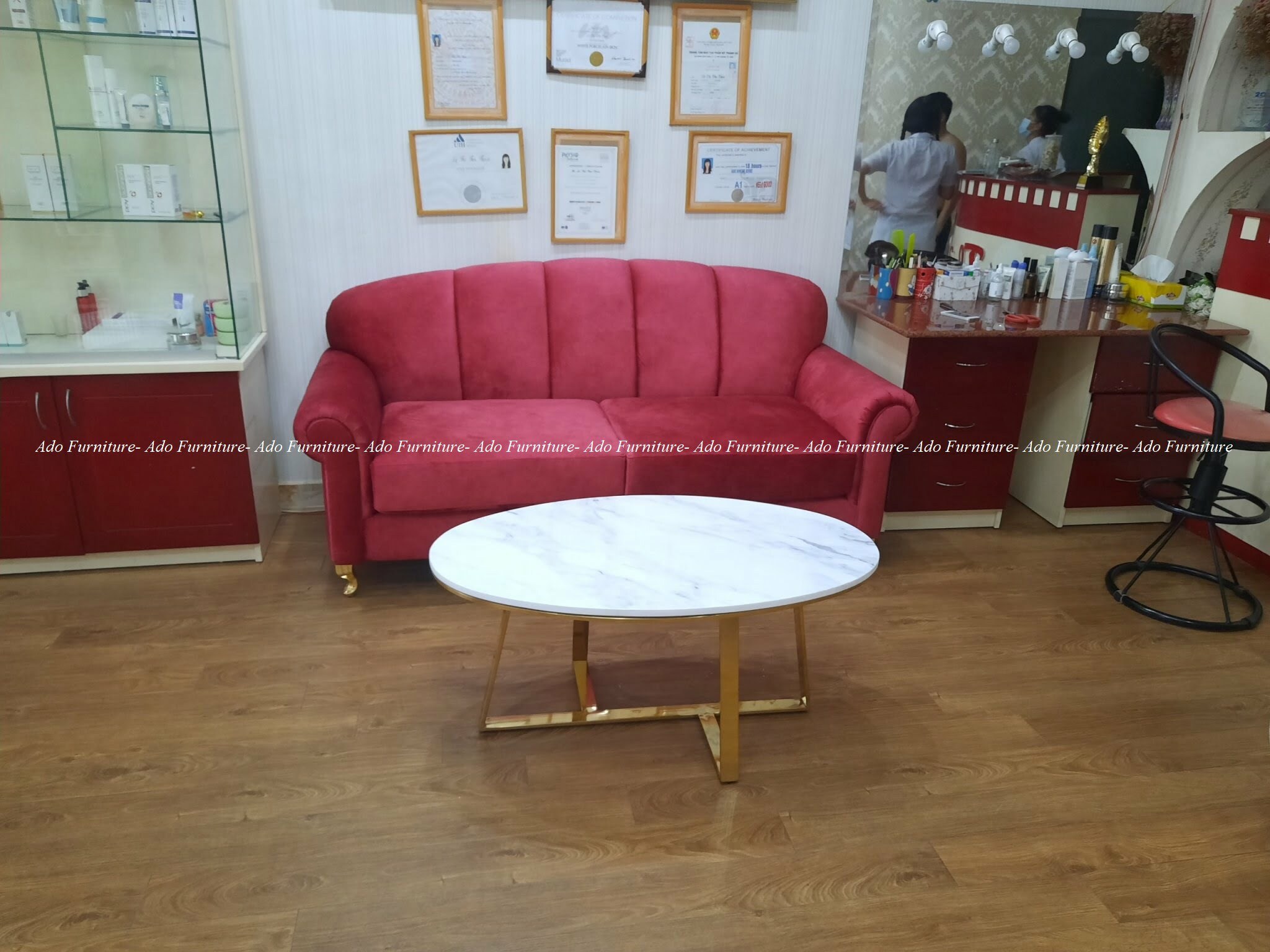 Sofa băng nhung đỏ được bảo hành kết cấu khung 3 năm.