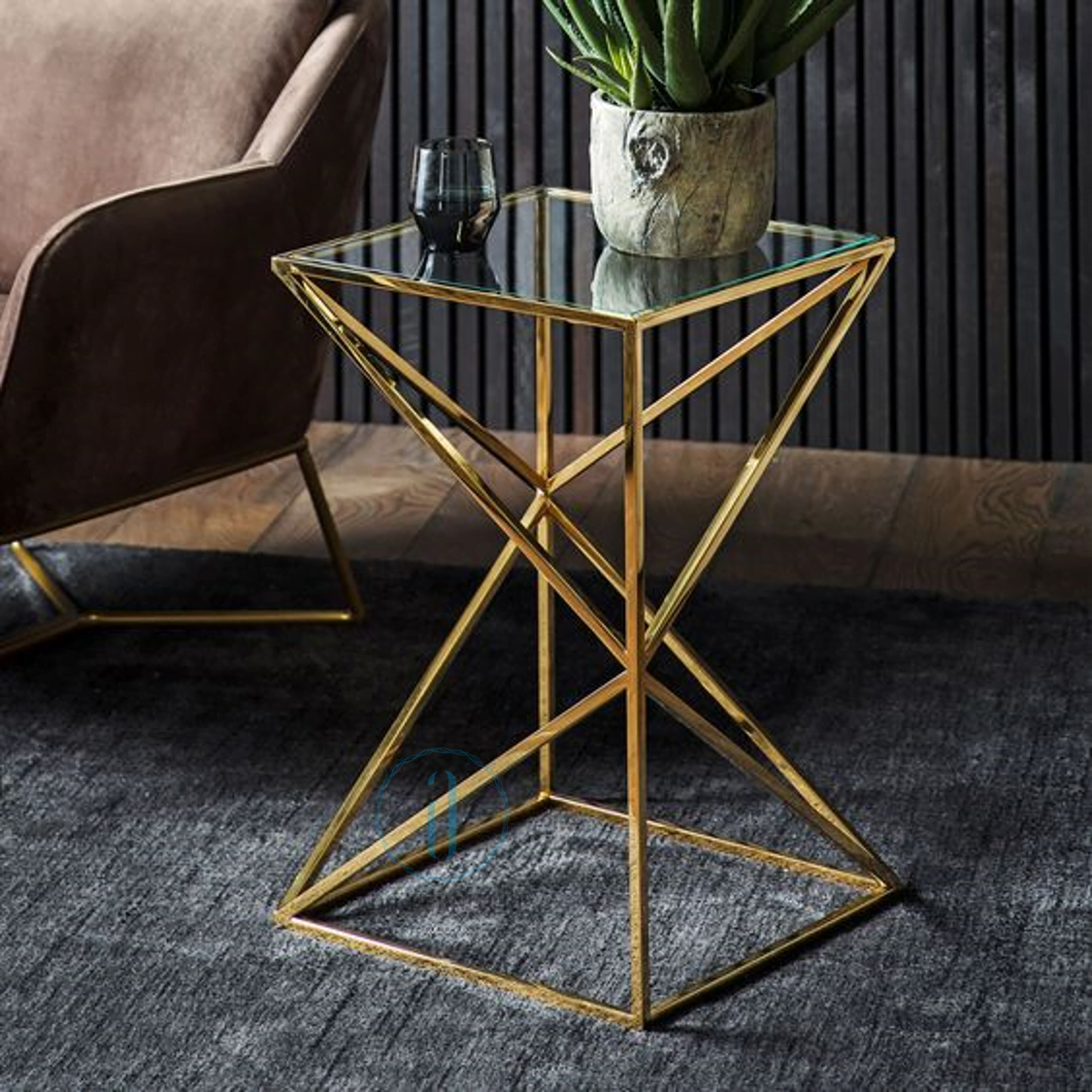 bàn góc inox mặt kiếng mạ vàng là một mẫu bàn trang trí thịnh hành hiện nay. Được đặt cạnh ghế sofa, dùng để trưng bày những sản phẩm decor như đèn bàn, sách, hay tượng trang trí.